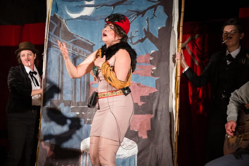 After working together to build shows, we create a beautiful, raucous and thought provoking weekend of performances featuring a diverse group of new and classic cantastoria and cranky pieces. Flying Cardboard Theater and other artists from the Cantastoria Festival perform work throughout the year. Contact us if you would like a cantastoria show at your event.