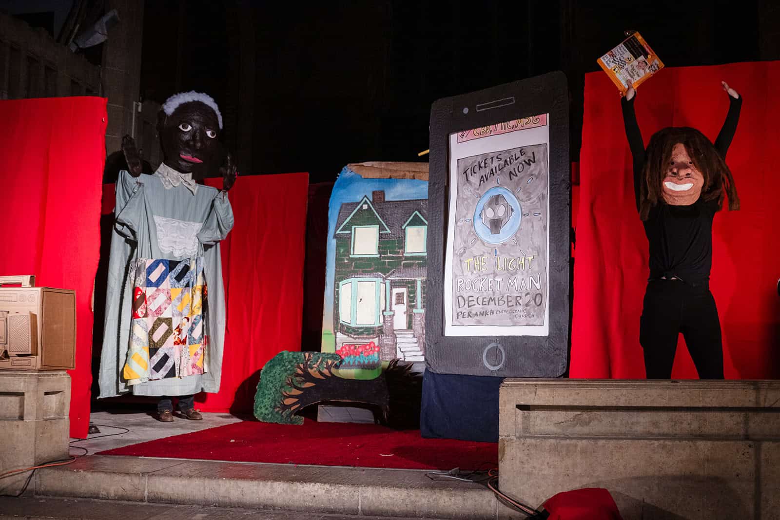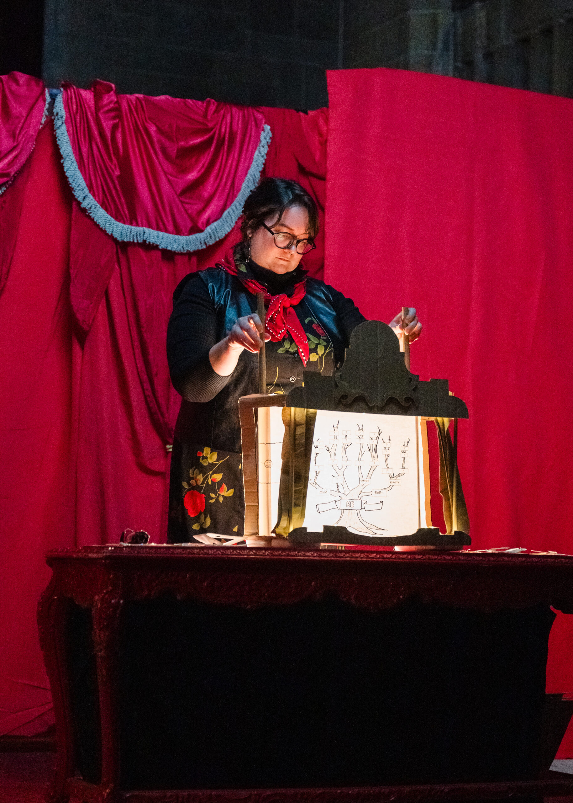 After working together to build shows, we create a beautiful, raucous and thought provoking weekend of performances featuring a diverse group of new and classic cantastoria and cranky pieces. Flying Cardboard Theater and other artists from the Cantastoria Festival perform work throughout the year. Contact us if you would like a cantastoria show at your event.